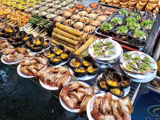 ナイトマーケットでは新鮮なシーフードをその場で焼いて提供してくれます。