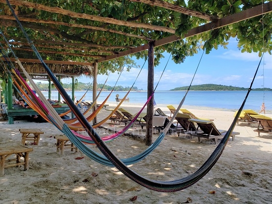 ホテルを出てローカルビーチに繰り出してみました。ハンモックに寝そべってボーっとする幸せな時間。