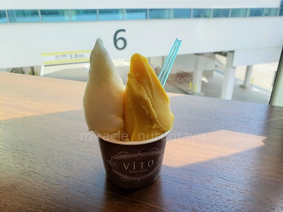 翌日新千歳空港へ戻って、念願の美瑛のコーンぱんとソフトクリームを食べて