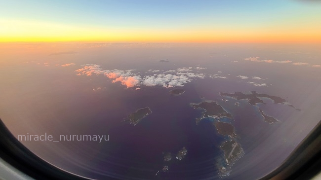 夕方のフライトは空の色がみるみる変わって行くのを見るのがおもしろくて、ずっと窓に張りつきマンです。