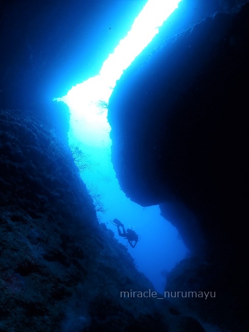 この池は洞穴で外海とも繋がっているため、ダイバーは外海からその洞穴を通ってこの池に浮上することが出来るのです。ちなみにこの通り池、宮古島では最難関のダイビングポイントと言われています。