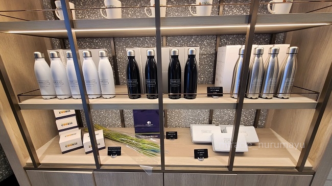 店名のロゴが入ったサーモボトル(1本4,200円)はじめ、クッキーの詰め合わせなどオリジナルグッズも販売されています。