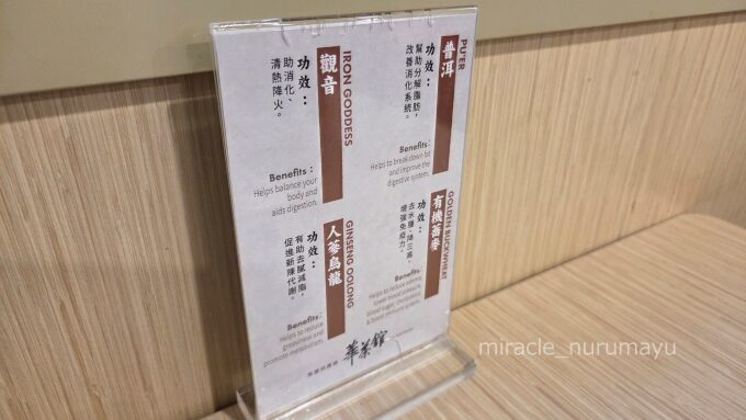 メニューを選んでいたら、スタッフさんから「お茶はどれにします?」と尋ねられます。