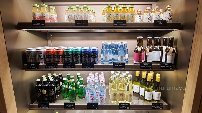 黄桜京都麦酒や京都西陣麦酒の地ビール、丹波ワイン、京都宇治玉露の玉兎(たまうさぎ)、ひやし飴などが並んでいます。京都ならではですね。見ているだけで楽しいです。