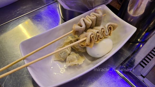 オムク(魚の練り物)、ゆで卵、水餃子も運ばれてきました。